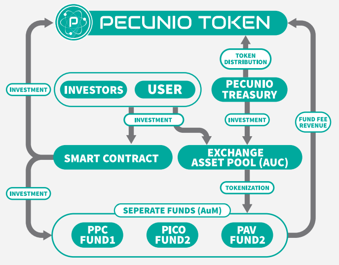 Berdasarkan Ethereum, semua token kami adalah standar ERC-20, menggunakan jaringan verifikifikasi terdesentralisasi global yang aman yang memungkinkan untuk memberi token pada dana blockchain kami. Toko PCO Pecunio adalah token utilitas, yang dibangun di atas blockchain Ethereum. Token PCO Pecunio menerima hasil dari tiga sumber: Biaya manajemen, kinerja, dan biaya ICO. Pecunio akan mendapatkan penghasilan jutaan komisi dalam waktu singkat, menjadikannya investasi blue chip sejati bagi para pemegang tokennya.